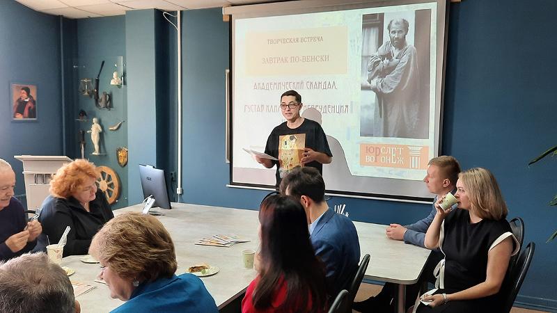 15 сентября в рамках Воронежского юридического слёта – 2025 состоялась творческая встреча, посвященная наследию Густава Климта, под названием: «Завтрак по-венски. Академический скандал: Густав Климт и юриспруденция». Гости и докладчик – заведующий кафедрой организации судебной власти и правоохранительной деятельности ВГУ Зотов Денис Валентинович, рассуждали о соотношении академической науки и творческой свободы художника на примере событий, случившихся в Вене в начале XX столетия.