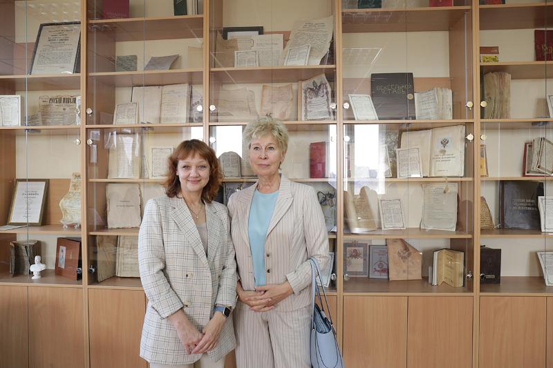 Заведующий кафедрой теории и истории государства и права ВГУ С.Н. Махина и заведующий кафедрой организации судебной власти и правоохранительной деятельности ВГУ Д.В. Зотов познакомили гостей мероприятия с экспозицией Лаборатории и программой Юрслёта–2025.