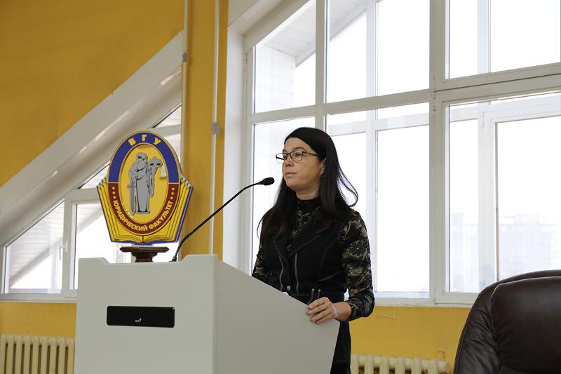 Платформой замечательного выступления послужил многолетний труд Елены Викторовны по исследованию истории образования Воронежского государственного университета и его классического факультета – юридического.