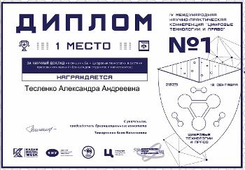 19 сентября 2025 г. в Казани состоялась IV Международная научно-практическая конференция «Цифровые технологии и право», организованная Казанским инновационным университетом имени В.Г. Тимирясова и Министерством цифрового развития государственного управления, информационных технологий и связи Республики Татарстан.