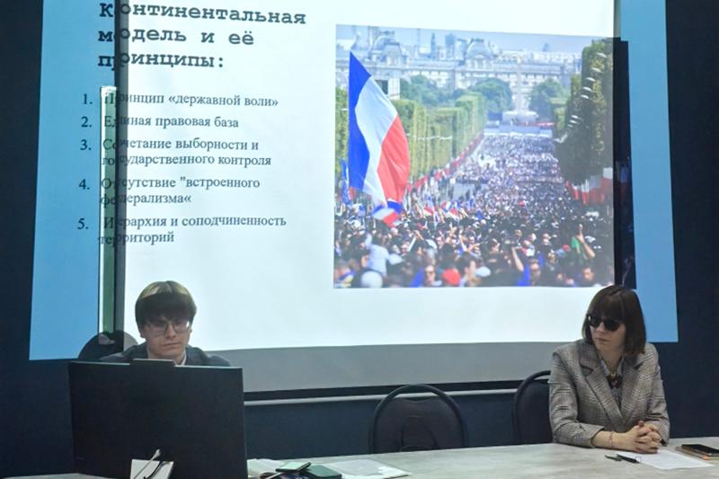 В завершении мероприятия с докладом на тему: «Местное самоуправление в системе публичной власти зарубежных стран (англо-саксонская и континентальная модели)» выступили студенты 11 группы 2 курса бакалавриата Вадим Казьмин и Владислав Луценко. Они охарактеризовали континентальную и англо-саксонскую модели и предложили вариант «гибридного» реформирования системы отечественного местного самоуправления с учетом лучших практик рассмотренных зарубежных моделей.