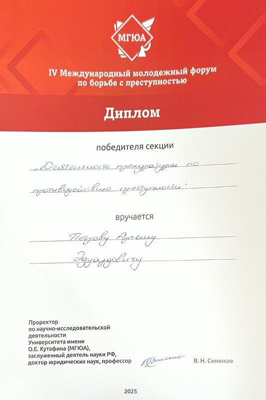 31 октября – 1 ноября 2025 года в Московском государственном юридическом университете имени О.Е. Кутафина (МГЮА) состоялся IV Международный молодежный Форум по борьбе с преступностью.