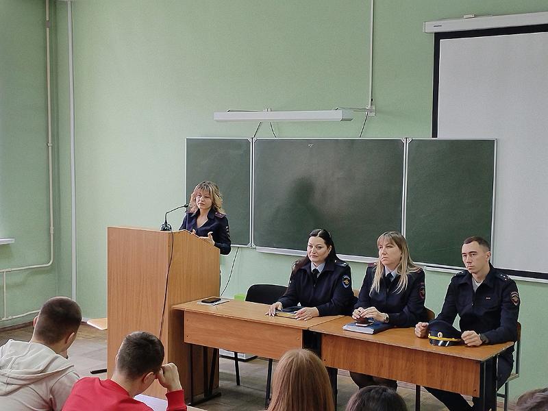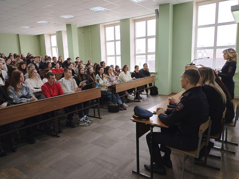 20 ноября 2025 года на юридическом факультете ВГУ состоялась встреча обучающихся выпускных курсов юридического факультета ВГУ с представителями УМВД РФ по Воронежской области – начальником отдела по расследованию преступлений на территории Центрального района г. Воронежа подполковником юстиции Пестрецовой Ольгой Николаевной, заместителем начальника ОУР УМВД России по городу Воронежу капитаном полиции Черниховым Евгением Юрьевичем, начальником отдела дознания УМВД России по г. Воронежу майором полиции Скоркиной Анной Юрьевной по вопросам возможного трудоустройства и сотрудником кадровой службы УМВД РФ по Воронежской области.