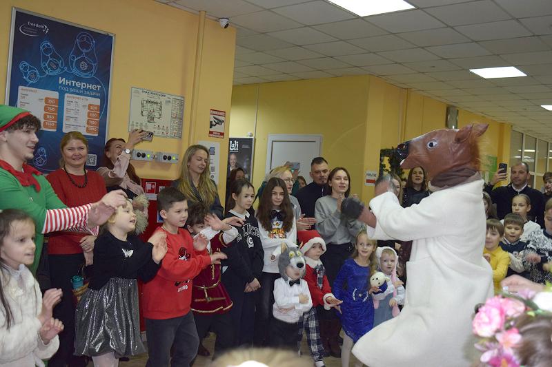 Ребята окунулись в атмосферу сказки вместе с Дедом Морозом, Снегурочкой, Бабой Ягой, Метелью, Коньком-огоньком и смешными эльфами. Яркое представление с песнями, танцами и играми подарило всем море радости и веселья. А подарки и мультфильм, конечно же, стали приятным сюрпризом для каждого ребёнка!